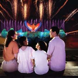 5. Jantar no Central Beach Bazaar – Livre e fácil de explorar e jantar no seu bazar gastronómico preferido 6. Wings of Time – Assista ao famoso espetáculo noturno à beira-mar de Singapura com fogos de artifício e efeitos de luz. 7. Sentosa Sensoryscape – Conclua o seu tour com um passeio relaxante por este jardim imersivo de luz e som.