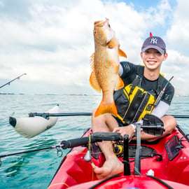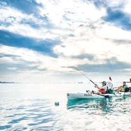 Experimenta a forma mais emocionante de apanhar um peixe em Singapura. Vai com o nosso guia de pesca especializado em caiaques de pesca Hobie – rápidos, estáveis e alimentados pelos pedais MirageDrive de alta tecnologia que te permitem deslizar suavemente e com as mãos livres para os melhores locais de pesca. Estes caiaques ficam baixos na água, dando-te uma vista de perto do oceano e uma sensação real de cada puxão, puxão e luta.