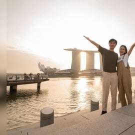 Capture as vistas mais icônicas de Singapura com uma sessão de fotos profissional e privativa em Marina Bay, com o Merlion, o horizonte urbano, a incrível arquitetura da cidade e os Jardins da Baía