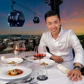 Jantar no céu no teleférico com o Chef Mathew Leong